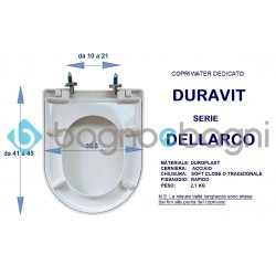Copriwater dedicato a chiusura rallentata per sanitari DELLARCO, DURAVIT. In materiale termoindurente avvolgente e con chiusura NORMALE O SOFT CLOSE